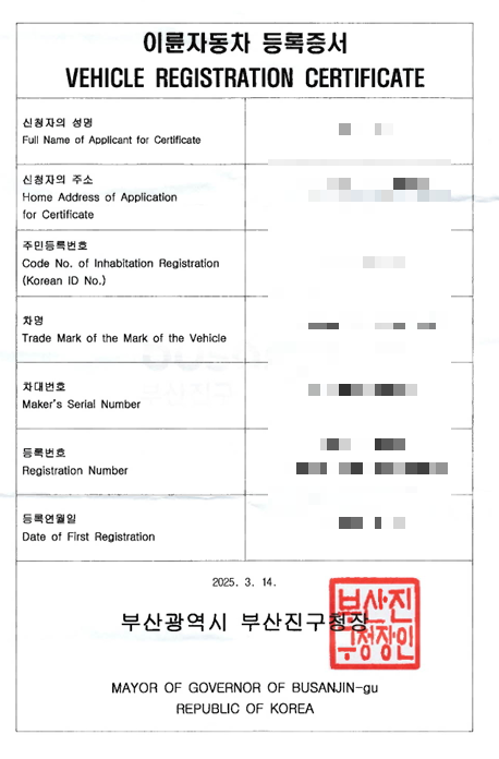 가끔 구청에 가서 영문 이륜자동차 등록증서를 요청하면 담당자분들이 잘 모르는 경우가 있다고 한다.