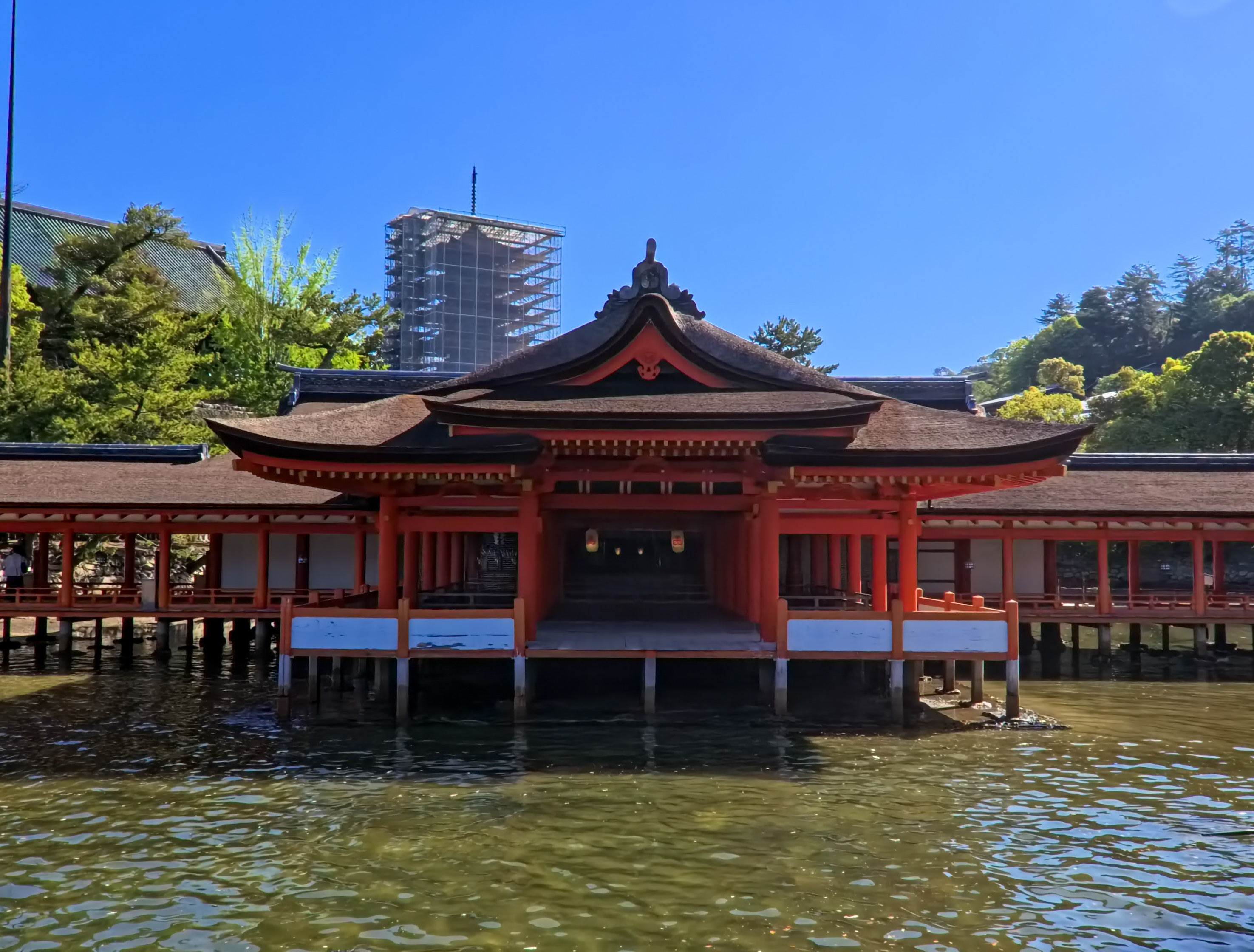 바다 위에 떠 있는 듯한 신사 건물과 토리이가 대표적인 풍경이고, 밀물 때는 진짜 물 위에 떠 있는 것처럼 보이고 썰물 때는 가까이 걸어갈 수도 있어서 이 차이도 미야지마의 큰 매력이라고 한다.