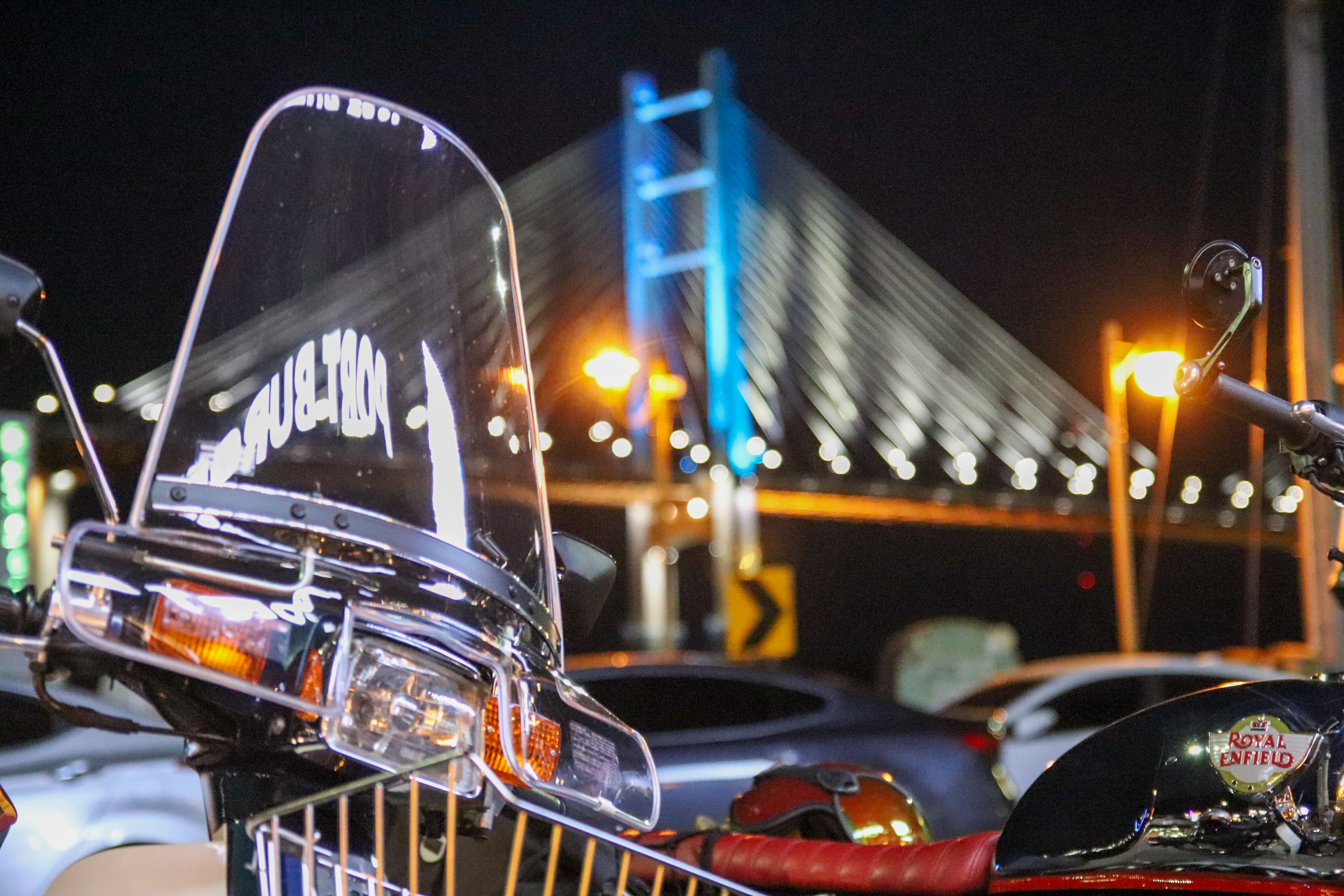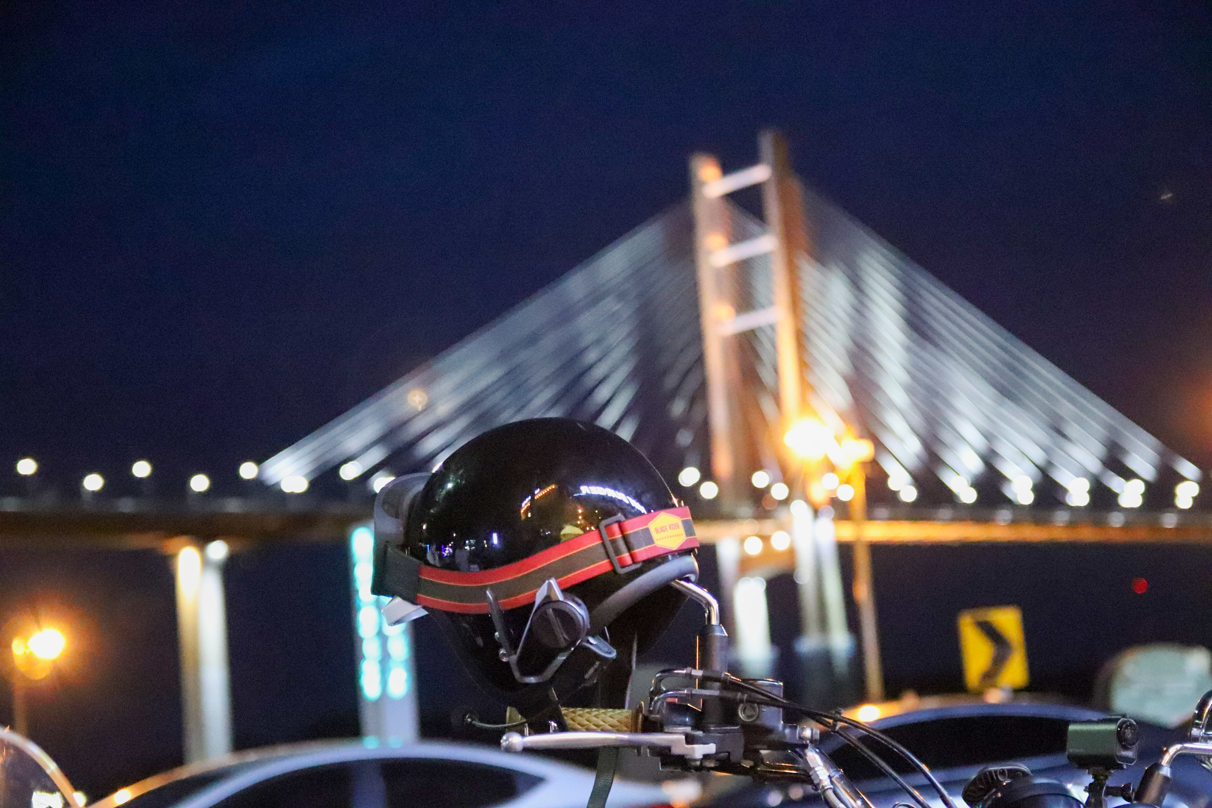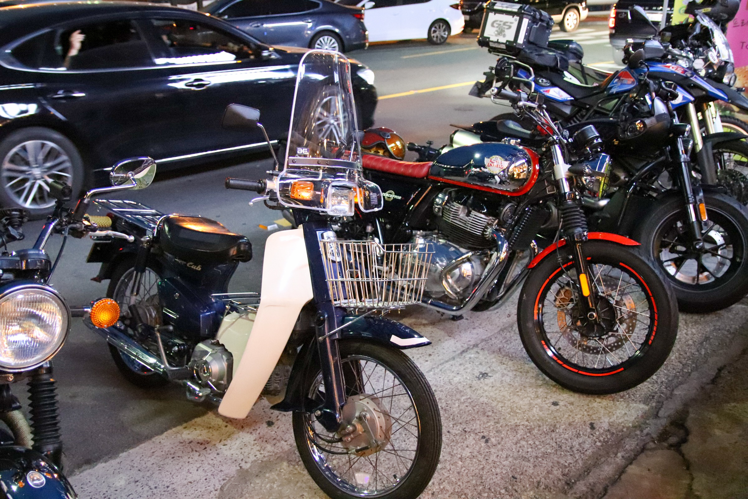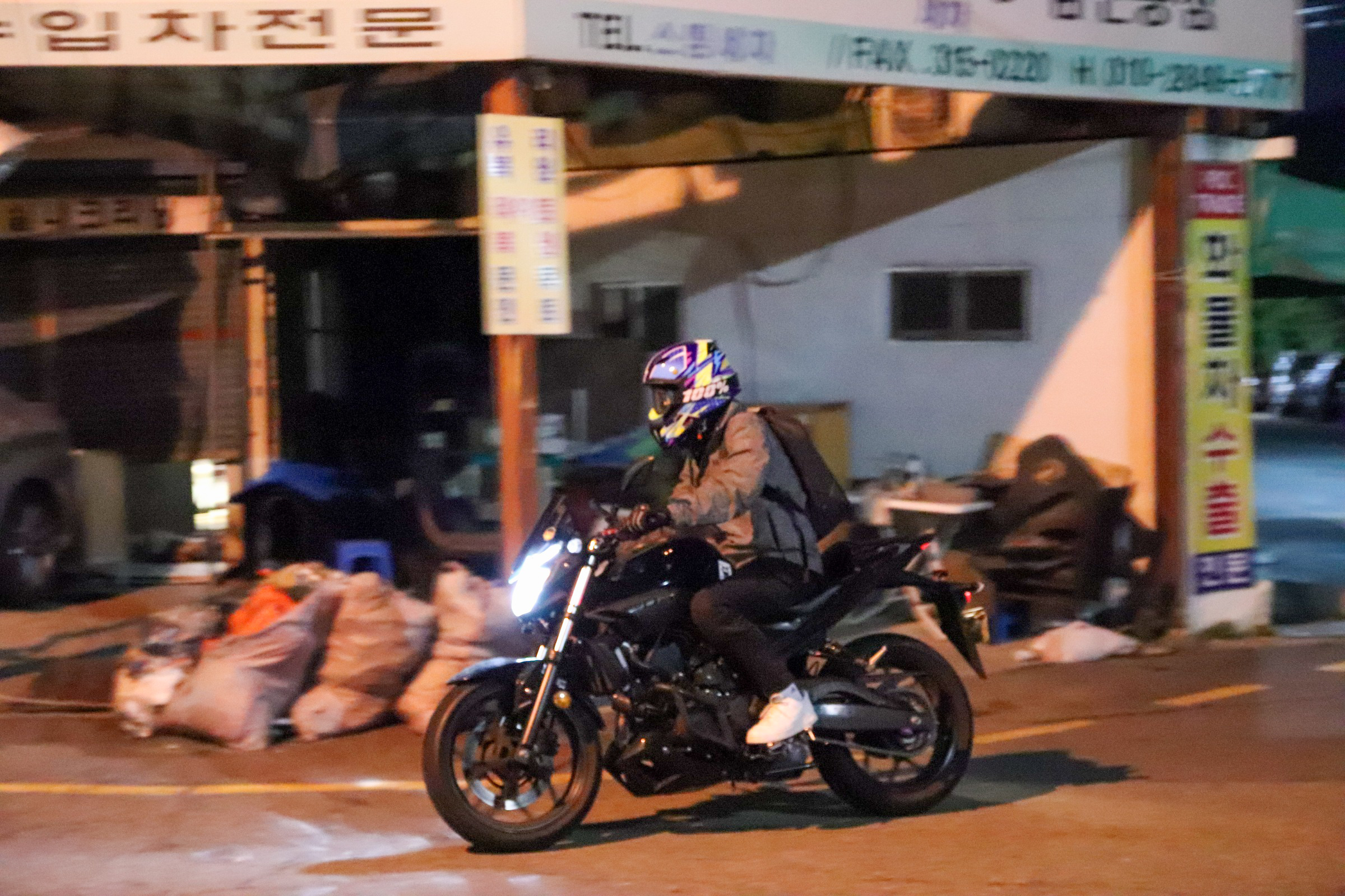 밤으로 넘어가는 시간대라 조명도 괜찮았고, 바이크 세워두고 사진 남기기엔 딱 좋은 분위기였다.