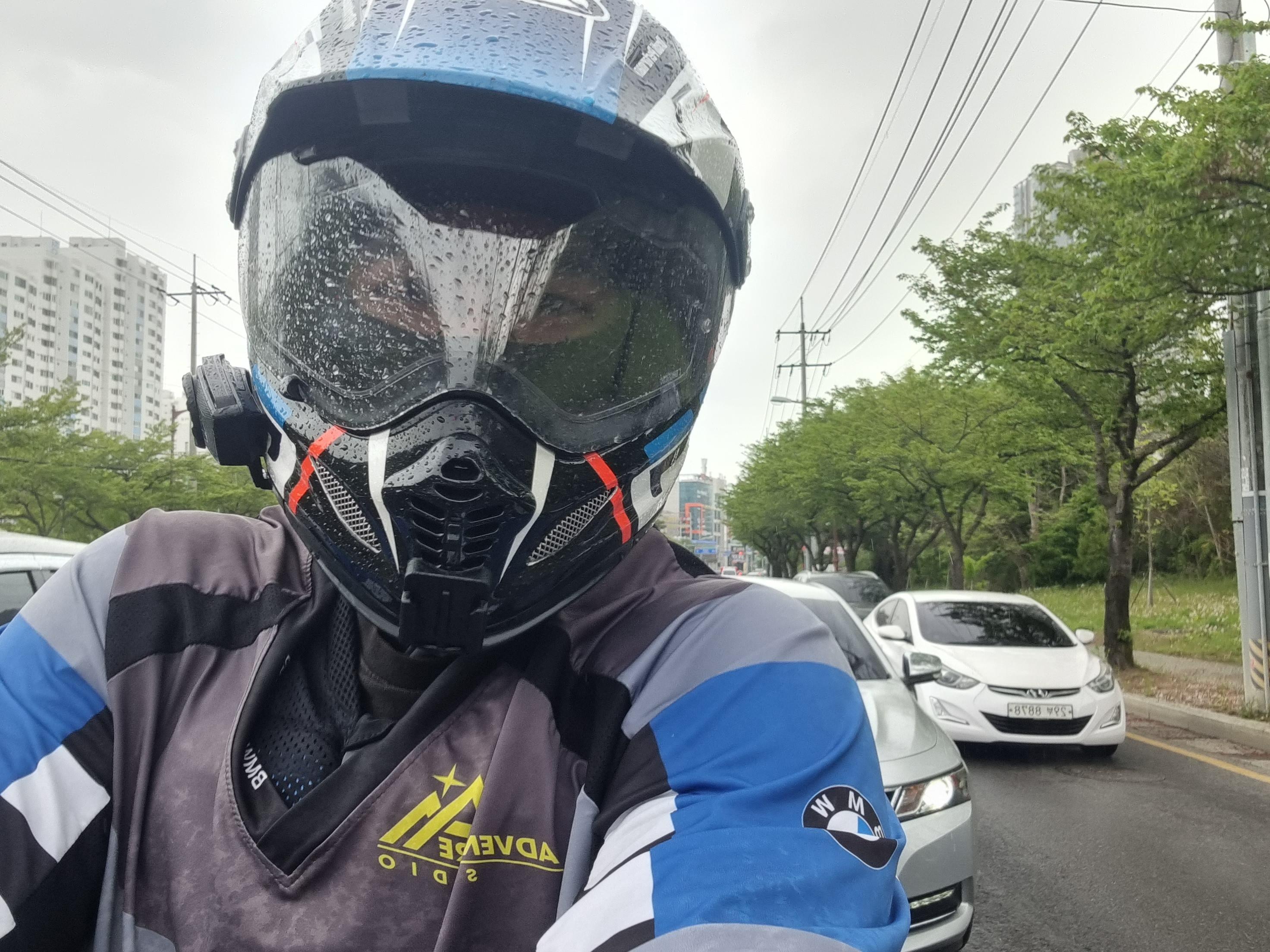 그래서 “어? 오늘은 안 오나?” 싶어서 헬멧까지 쓰고 있는데 그 순간 바로 후드득 떨어지기 시작했다.