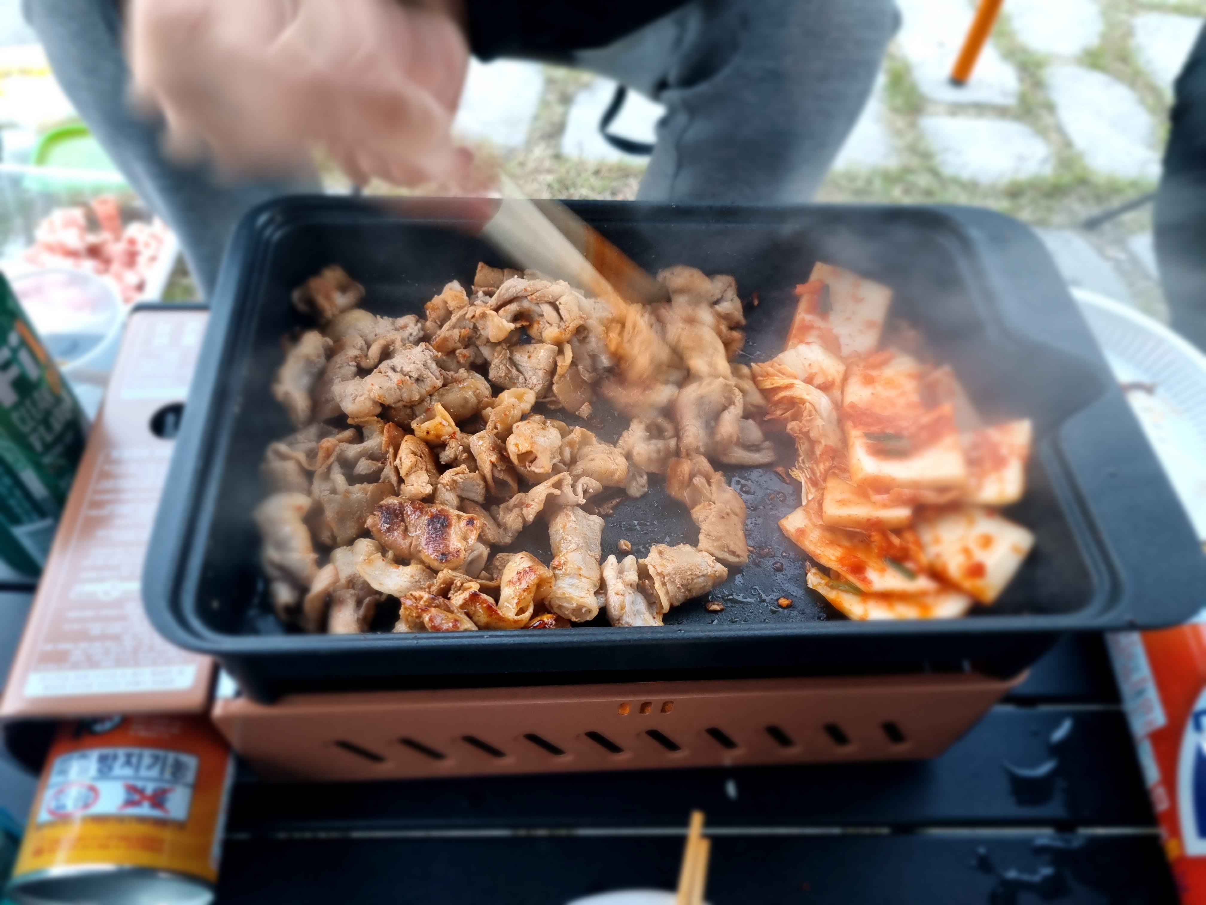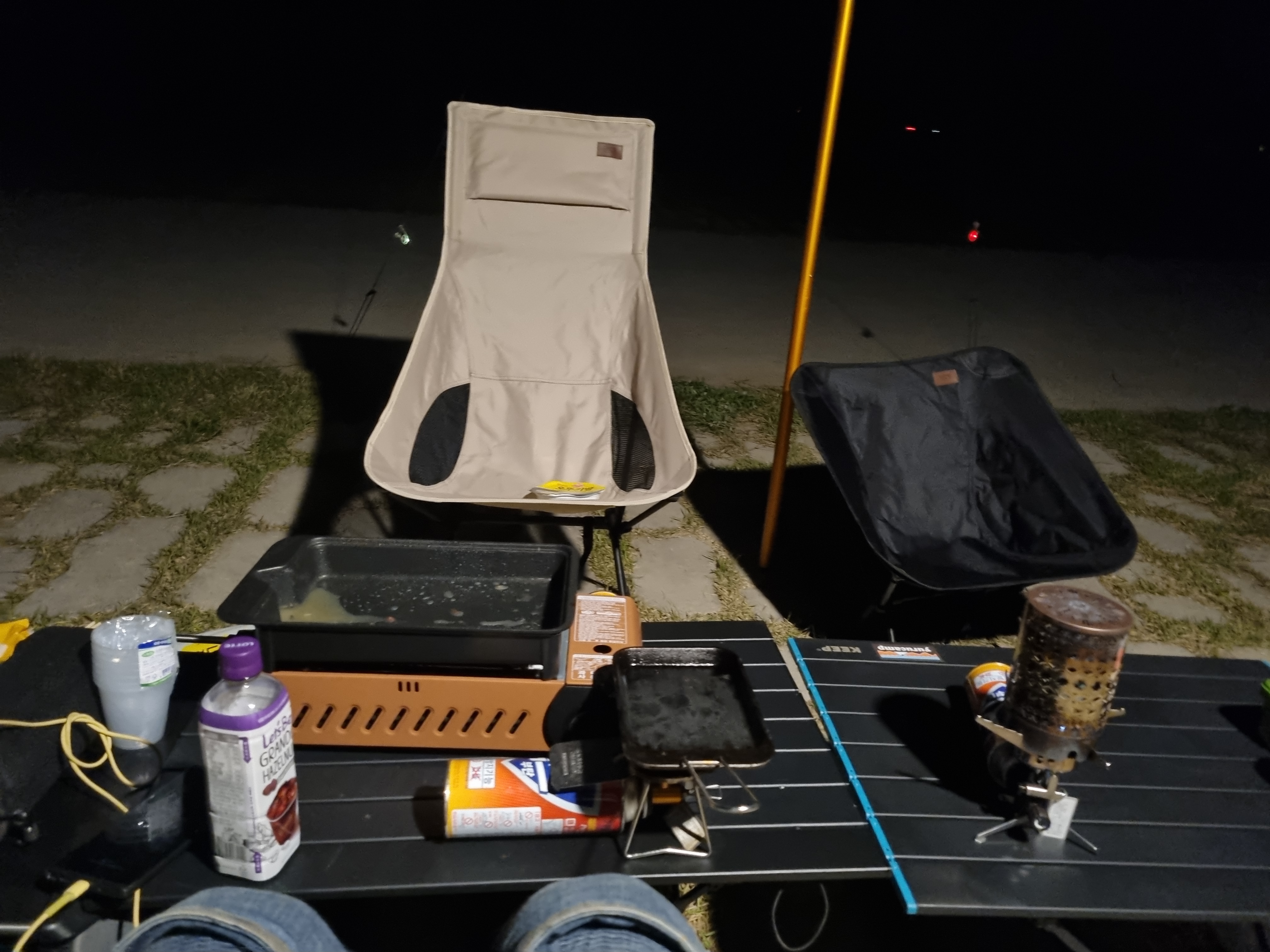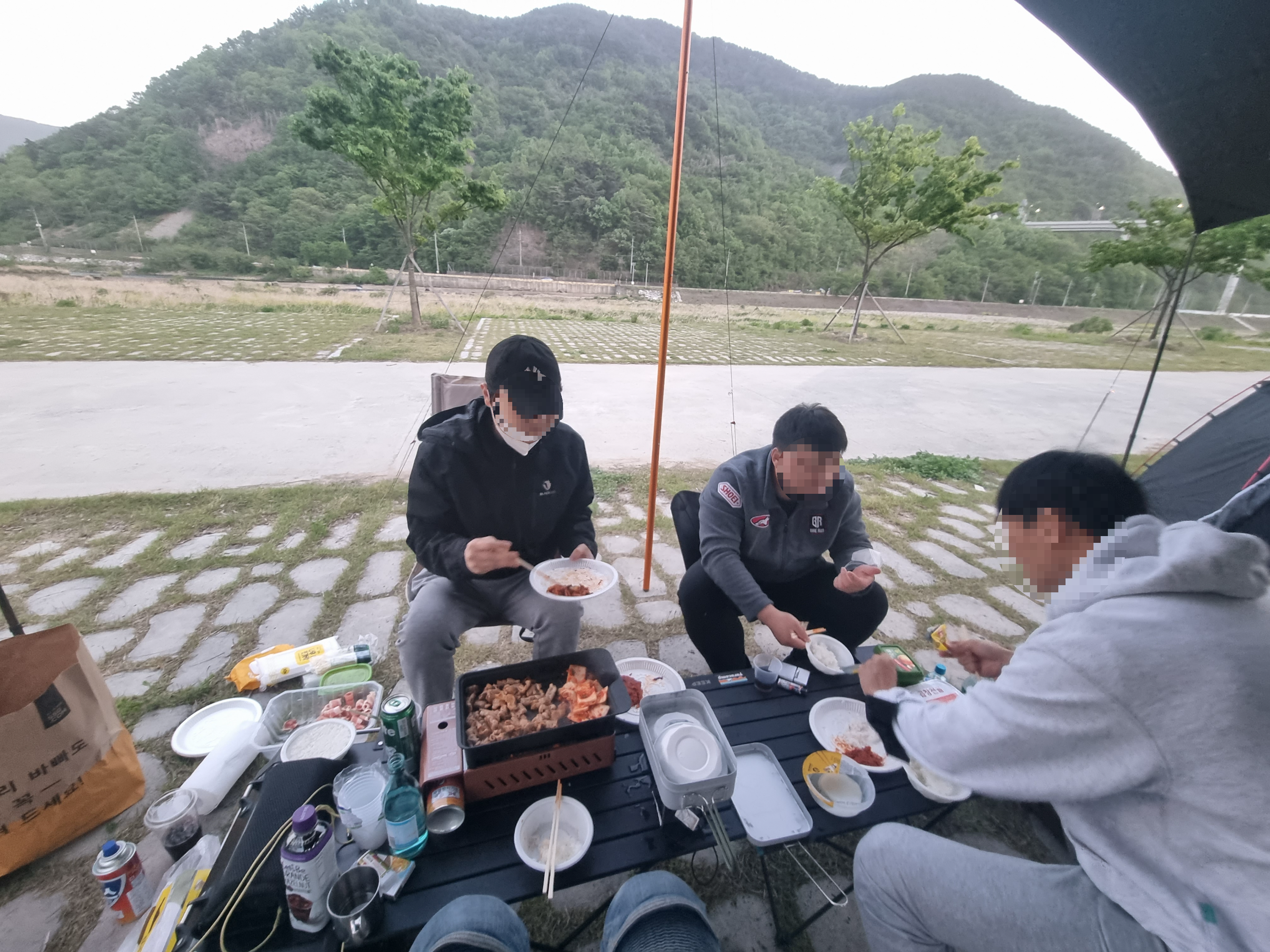 캠핑 가면 늘 배가 빨리 꺼지긴 하는데, 이날은 설치부터 너무 체력전을 해서 그런지 더 그랬다.