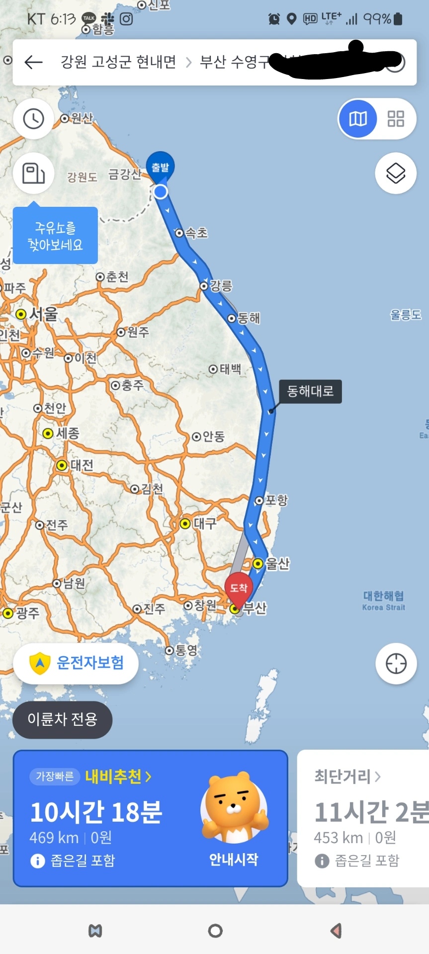 그렇게 생각하면서 내비를 찍어봤는데