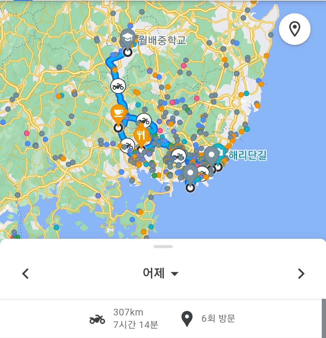 나중에 사진 다시 보다가 발견한 건데, 근처에 오토바이 주행 위험도로 같은 표지가 붙어 있더라.
