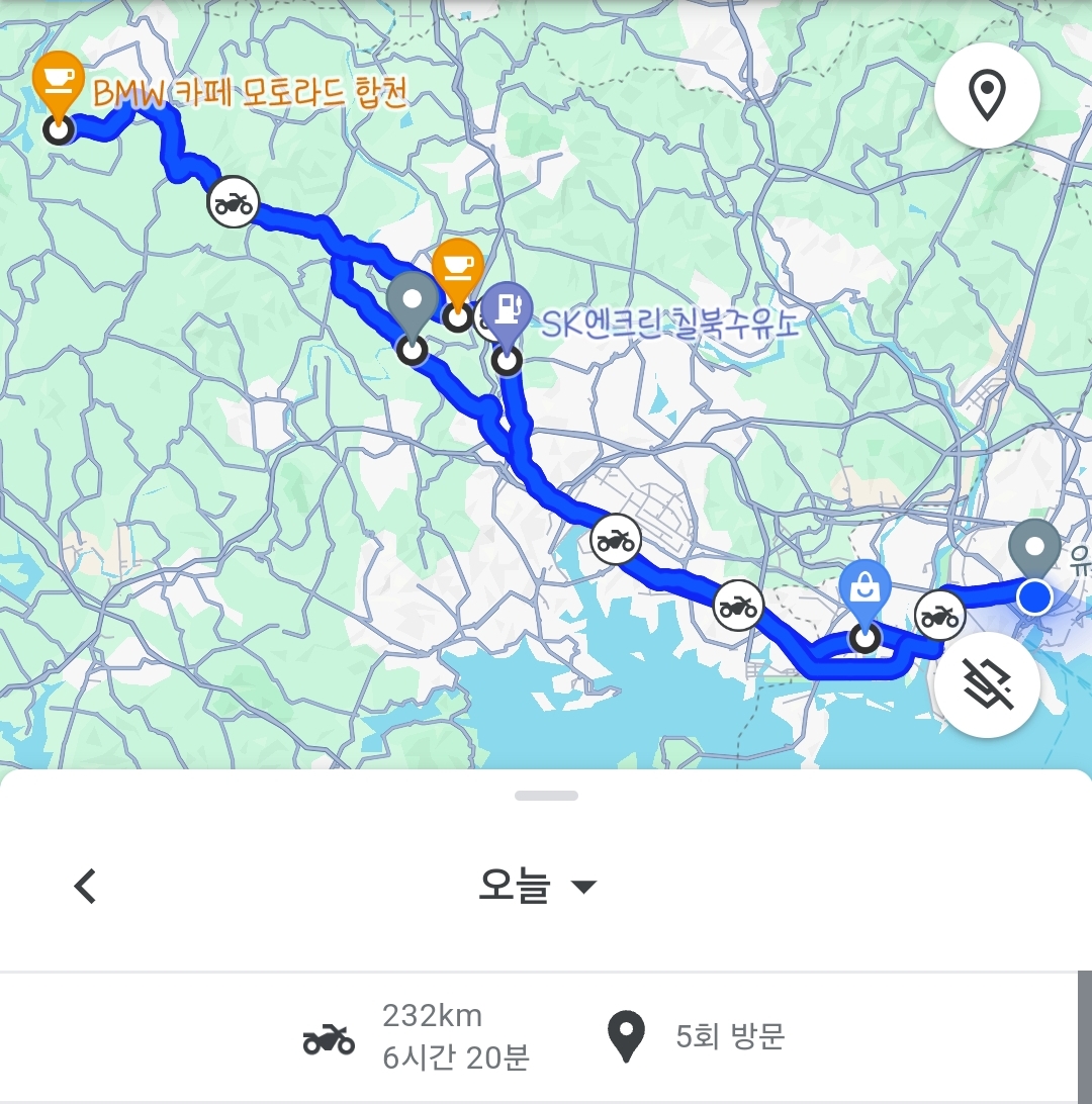 그렇게 바이크런을 들렀다가 진해터널-마산-창원교도소-함안 방향으로 쭉 진행했다.