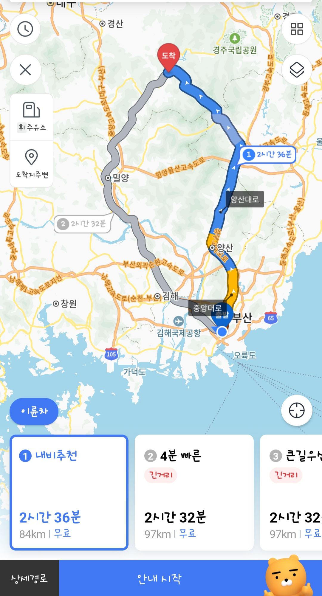 가는 길에 기름이 거의 다 떨어져서 주유를 한 번 했는데,