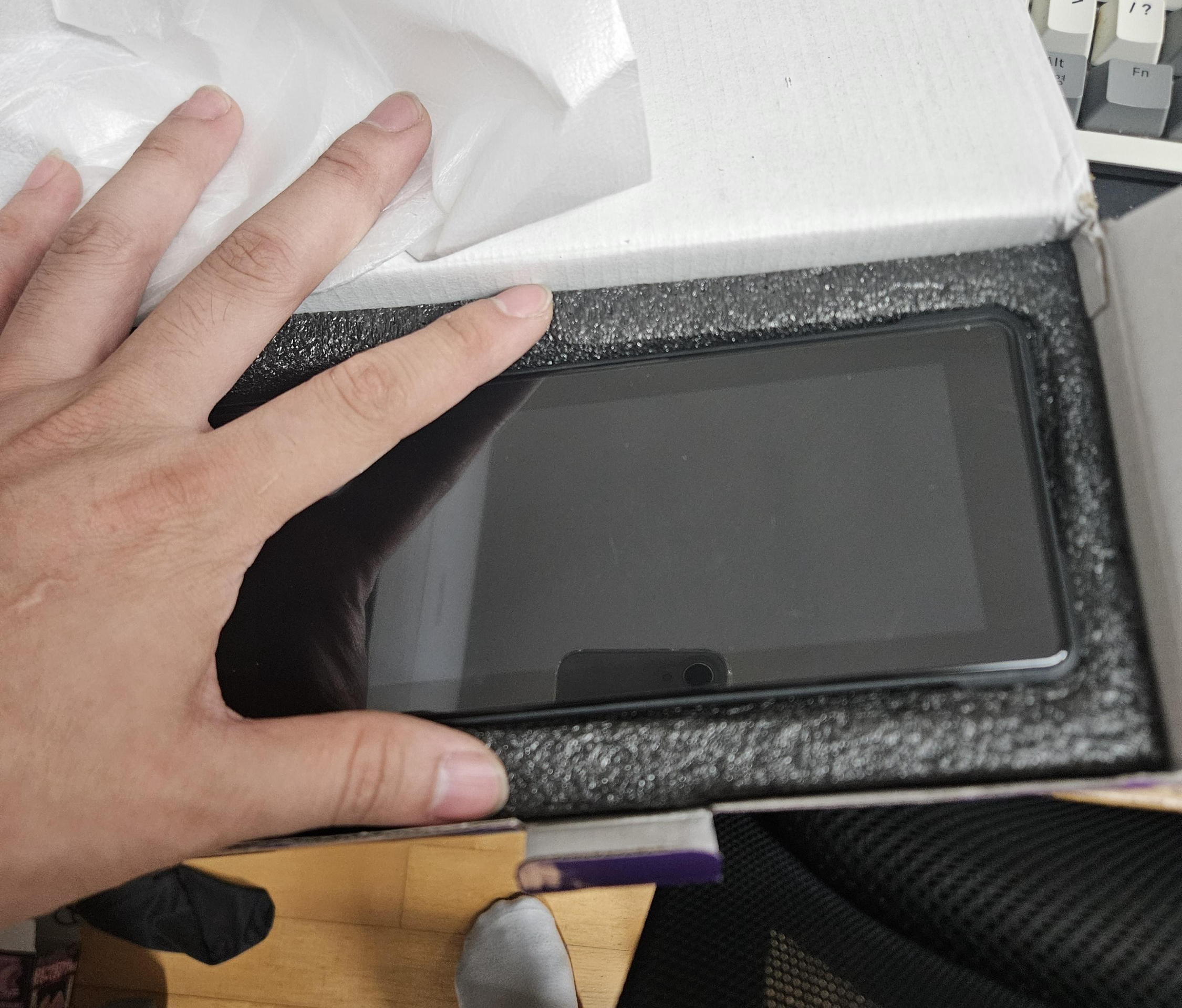 설마 저 베젤까지 전부 포함해서 7인치라고 한 건 아니겠지 싶을 정도로 테두리가 꽤 두꺼웠다. 막상 보니 “어? 생각보다 좀 작은데?” 싶은 느낌이 먼저 들었다.